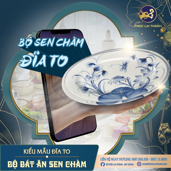 BỘ ĐỒ ĂN SEN CHÀM SỨ CAO CẤP MÂM TIỆC 20 NGƯỜI