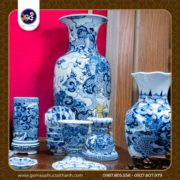 Bộ đồ thờ sử dụng Men Rong Trường Tồn – dòng men mới kết hợp giữa vẻ đẹp truyền thống và kỹ thuật hiện đại.