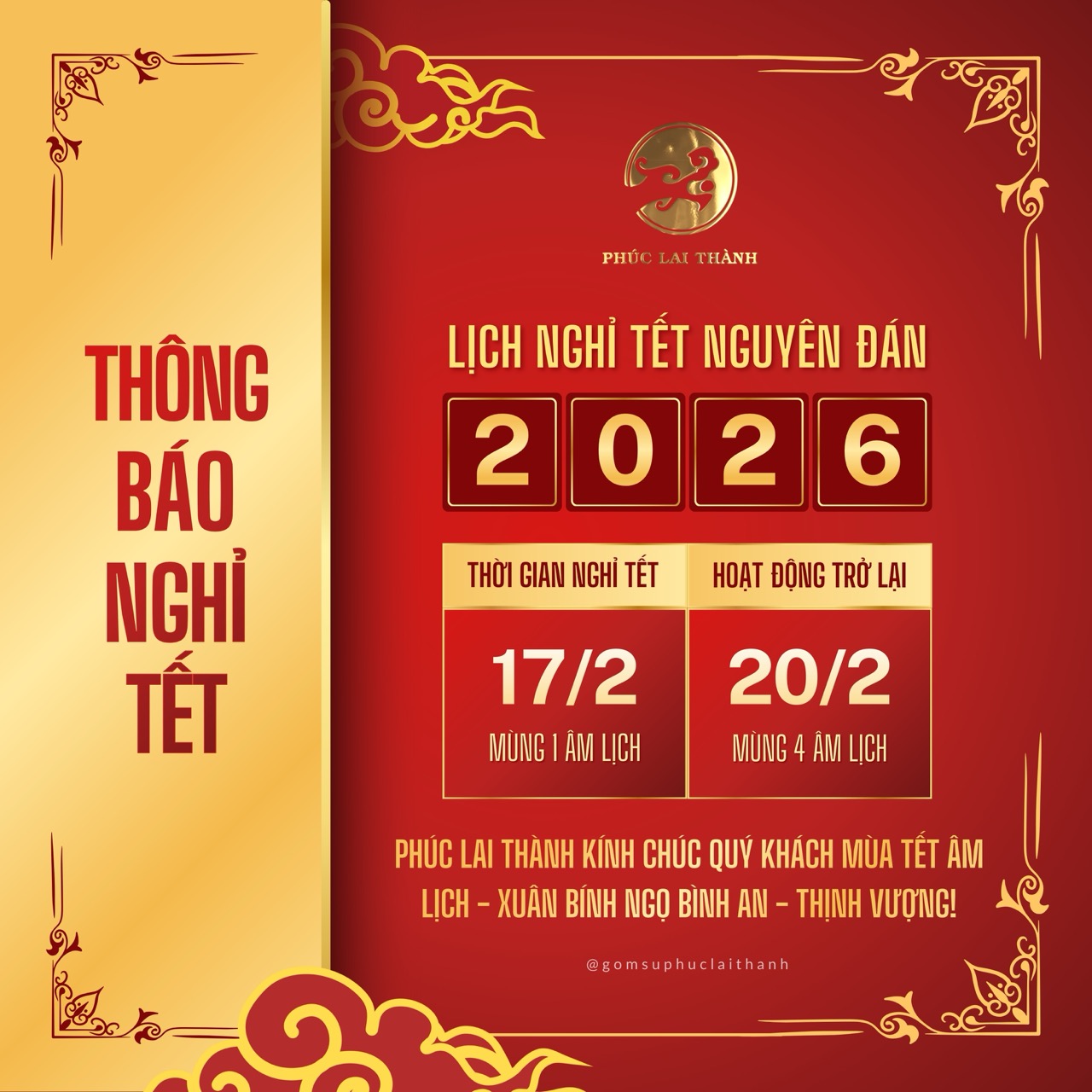 Phúc Lai Thành xin trân trọng thông báo lịch nghỉ Tết để Quý khách chủ động sắp xếp thời gian mua sắm: