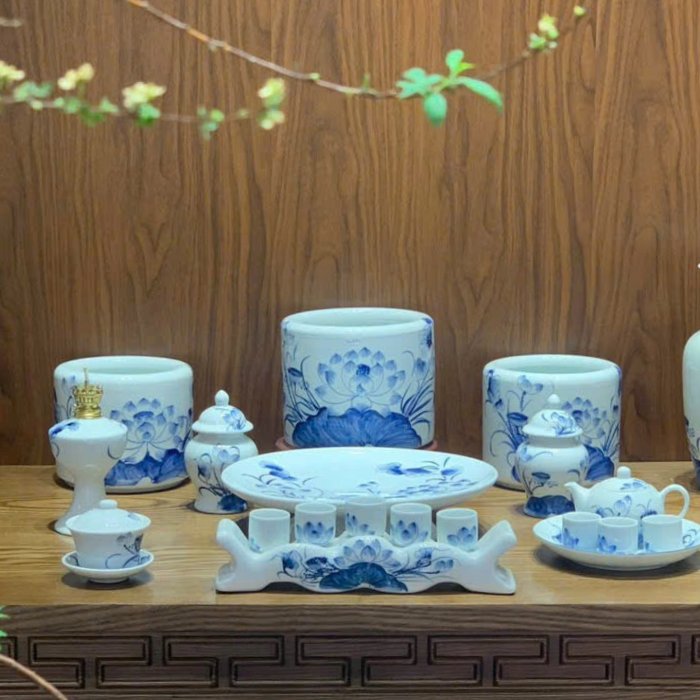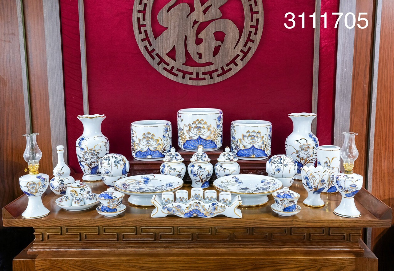 Cung cấp Đồ Thờ Cao Cấp: Toàn bộ đồ thờ như bát hương, lọ hoa, mâm bồng, bộ ấm chén... được chọn lọc từ các thương hiệu gốm sứ uy tín, đảm bảo chất lượng, tính thẩm mỹ và yếu tố tâm linh.