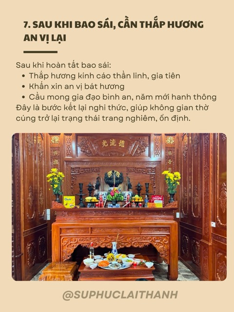 - Bao sái trước ngày 23 tháng Chạp hoặc sau lễ cúng Ông Công Ông Táo