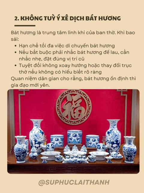 - Tuyệt đối không xoay hướng hoặc thay đổi trục thờ nếu không có hiểu biết rõ ràng