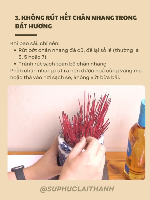 - Rút bớt chân nhang đã cũ, để lại số lẻ (thường là 3, 5 hoặc 7)