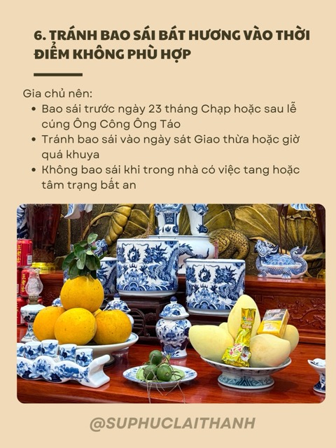 6. Tránh bao sái bát hương vào thời điểm không phù hợp